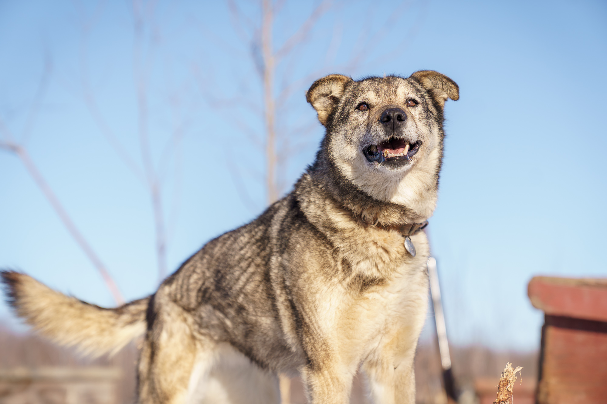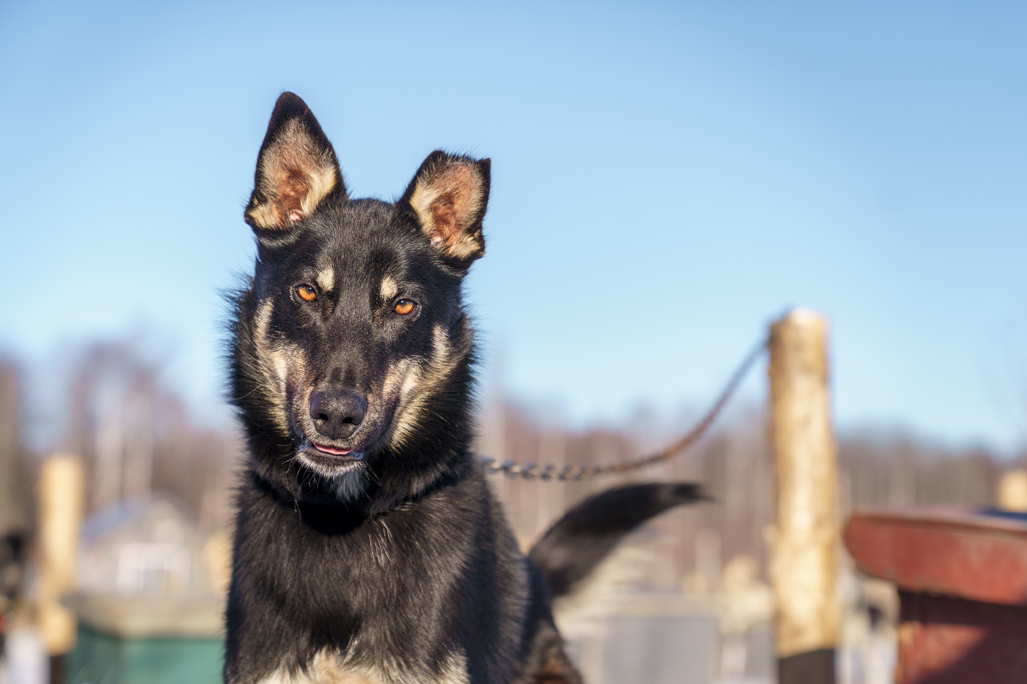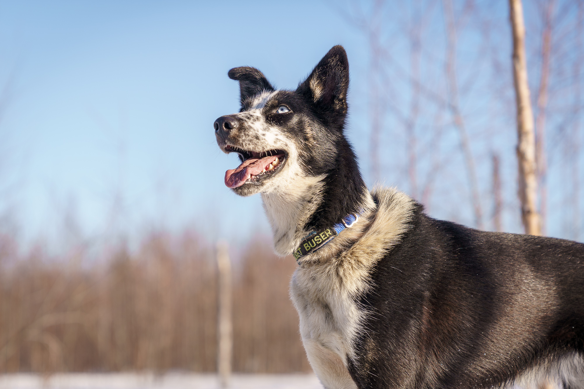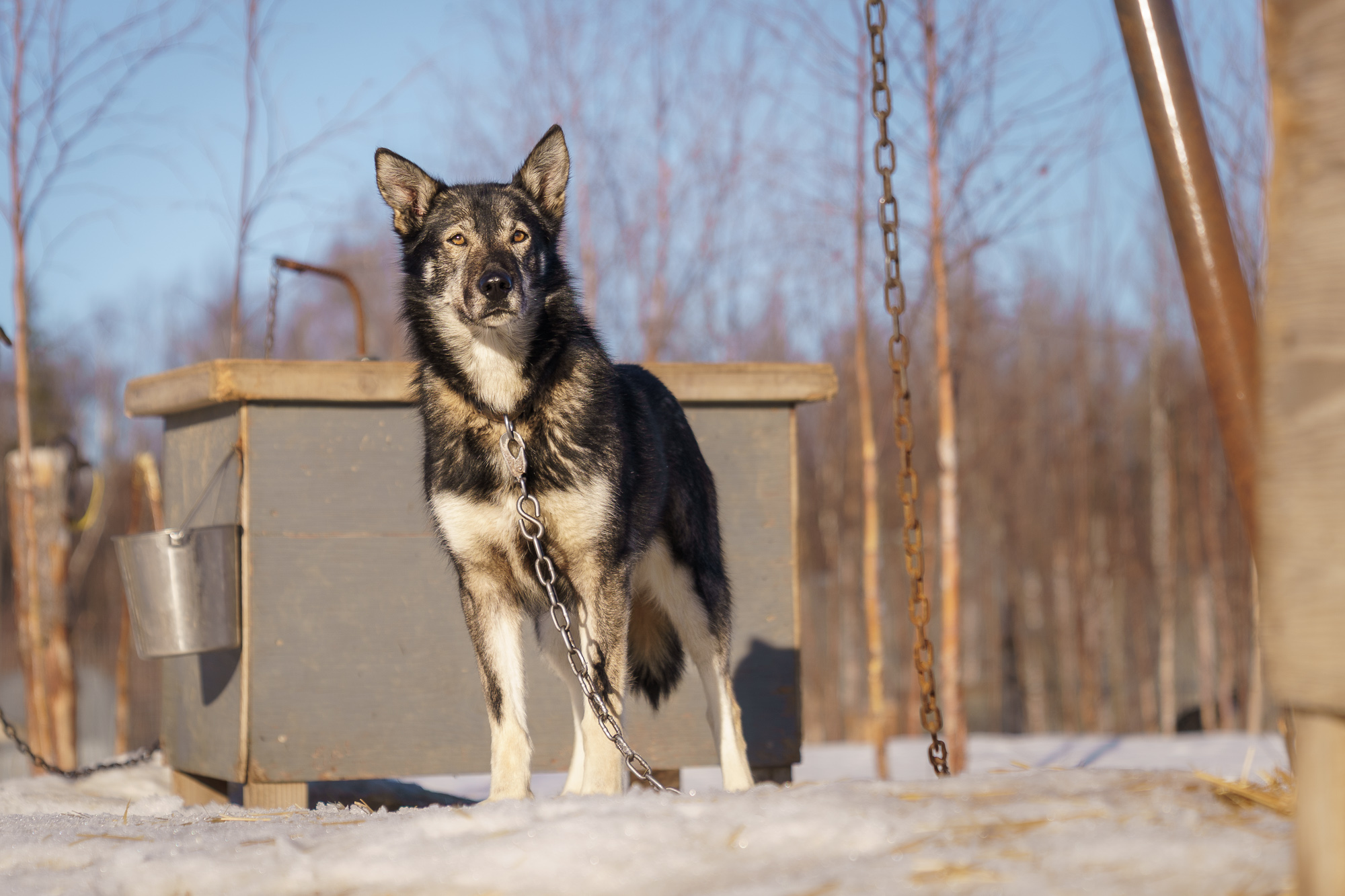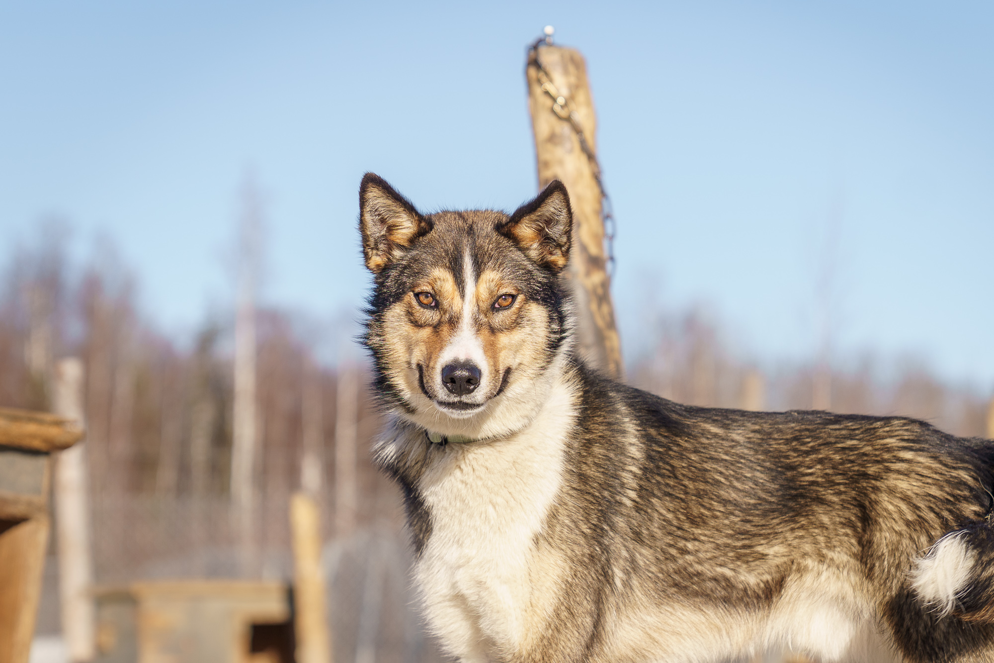 Alaskan Husky. Qute (pronounced cute) is a very unique girl. She prefers dogs to humans and seems to finally tolerate me. Unlike most of our dogs, she’s not a fan of being pet and prefers to follow me around at arms length. She’s a great sled dog and pretty much invisible when she runs. No nonsense and a hard worker. Surprisingly she’s Blistra’s sister, even though their nothing alike. (Same breeding as Blistra but Qute was a few years later). Qute has run a few mid distance races and at least one Iditarod.